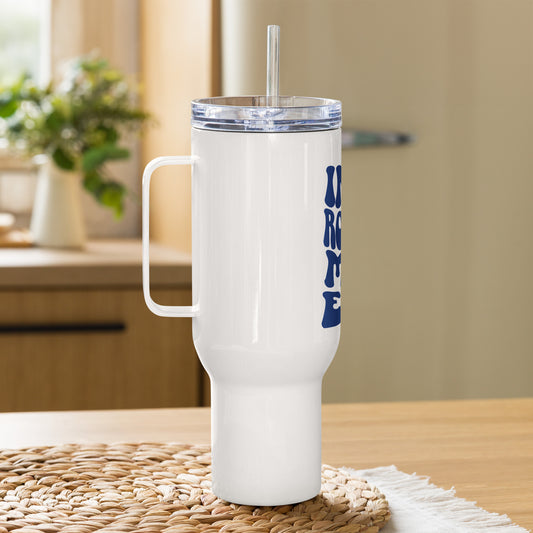 In My Rowing Mom Era (blue letters) Travel mug with a handle